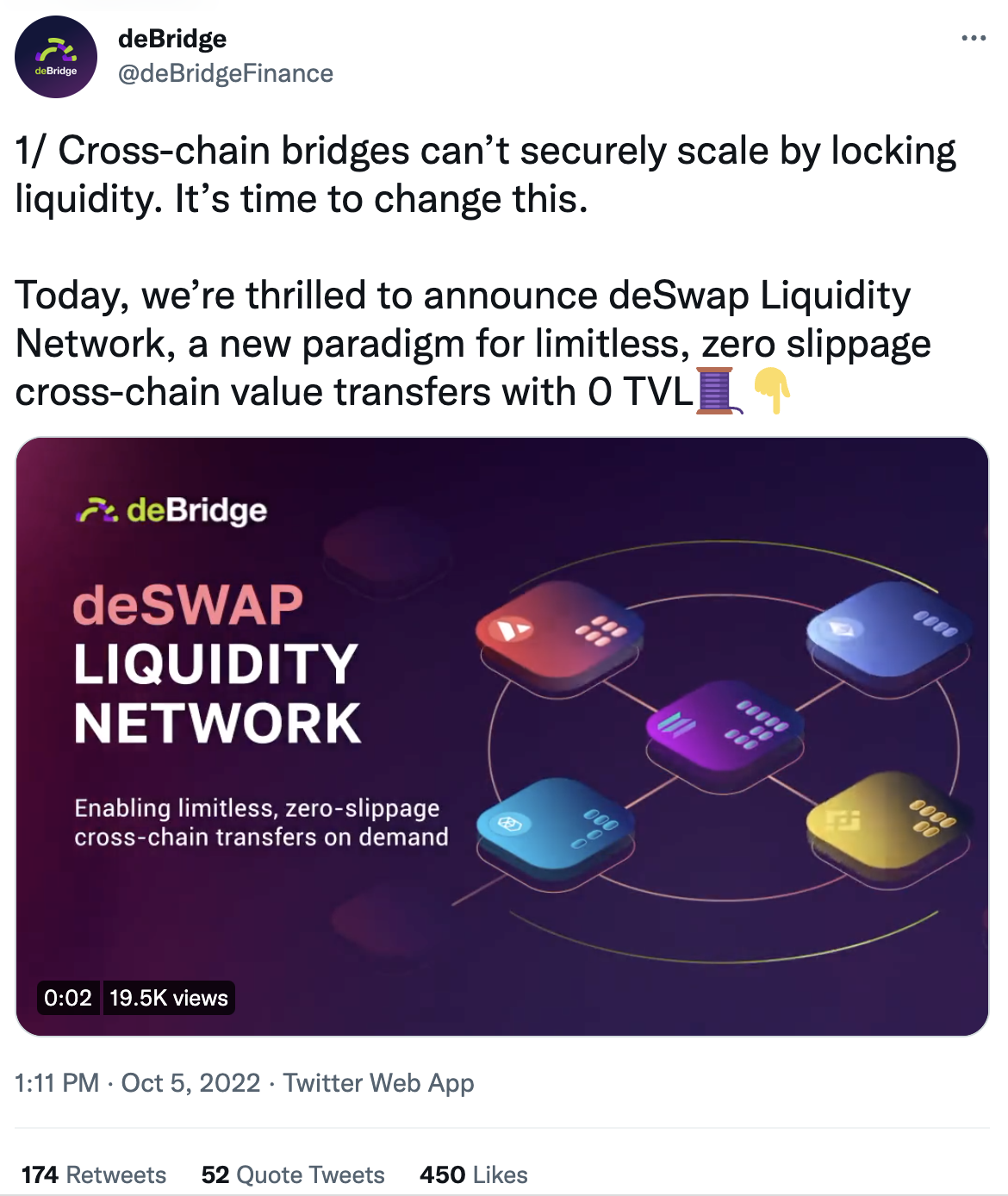 - ⭐️deSwap Liquidity Network (DLN), a new paradigm for limitless, zero slippage cross-chain value transfers with 0 TVL