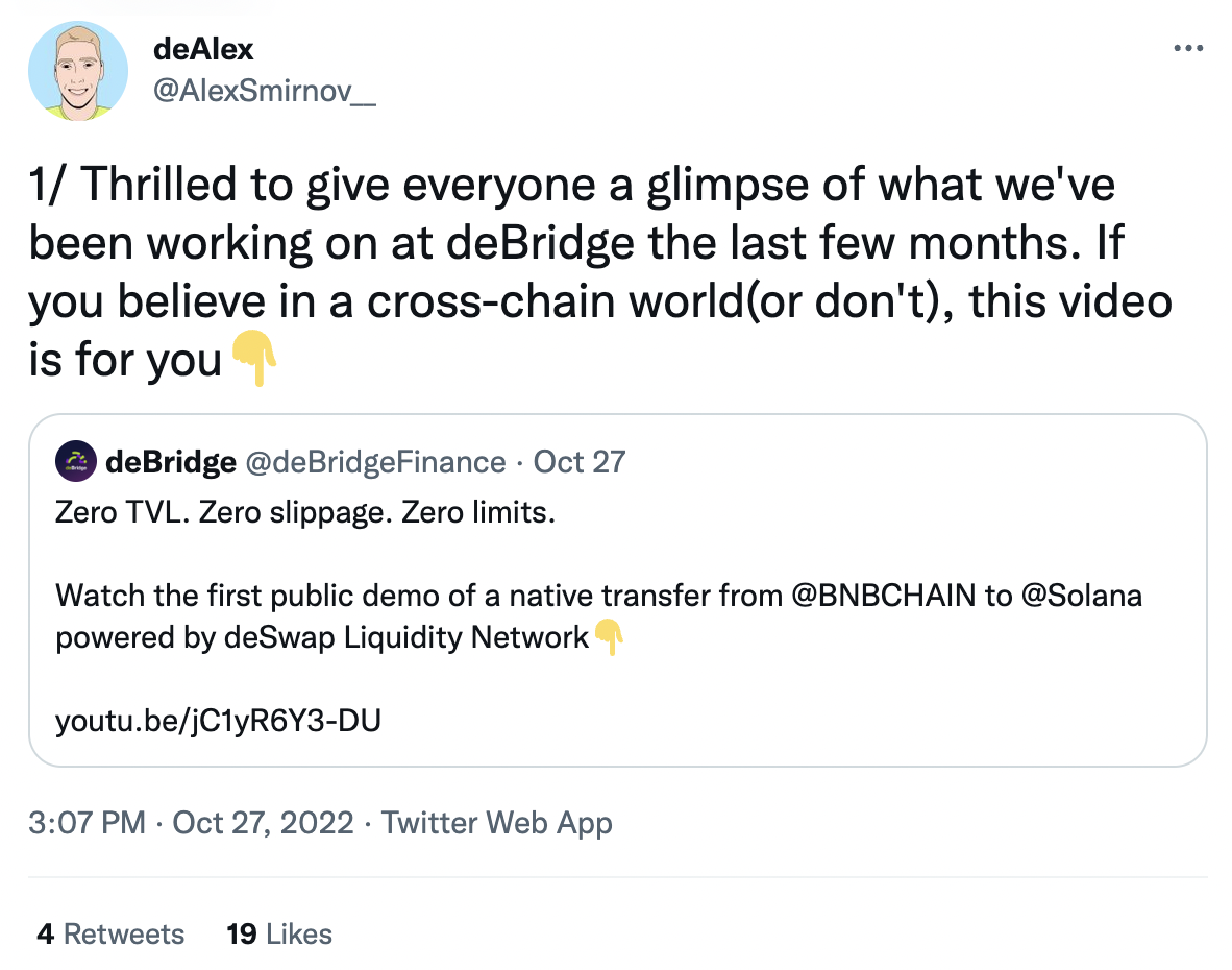 Now, that’s a wrap for October. Let’s make this November memorable with tons of exciting progress and development! We truly appreciate our community members and everyone that’s a part of the deBridge ecosystem.